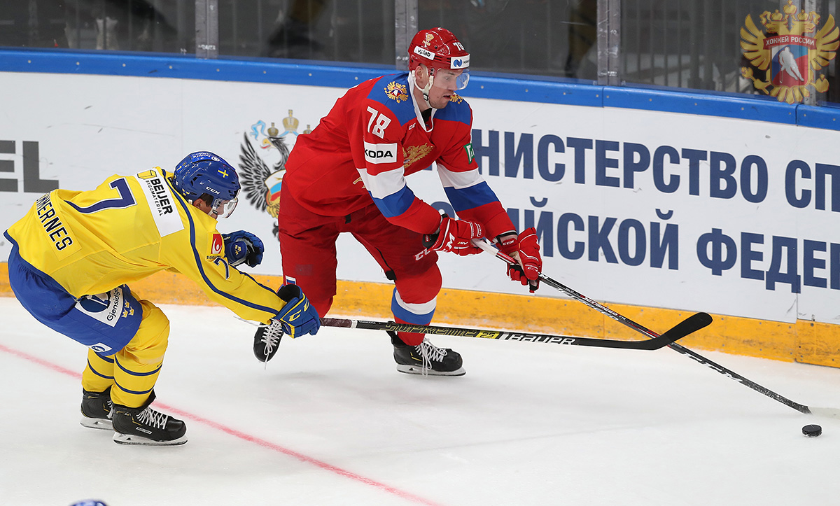 Подопечные Алексея Кудашова неудачно начали матч со Швецией, пропустив две шайбы за первый период. Авторами точных бросков стали шведские нападающие Андре Петерссон и Даниэль Бродин. На старте второго периода Швеция усилиями форварда Мальте Стрёмвалля забила вновь. Сразу после гола россияне провели замену вратаря: Александра Самонова сменил Илья Сорокин. До перерыва России удалось отыграть одну шайбу, удачный бросок в свой актив записал нападающий Вадим Шипачёв. В третьем периоде у россиян дубль удался Кириллу Капризову, у шведов гол на счету Даниэля Заара. Финальный штурм не принёс россиянам успеха.